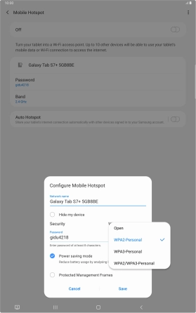 Press WPA2-Personal to password protect your Wi-Fi hotspot.