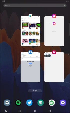 To end all running applications, press Close all.