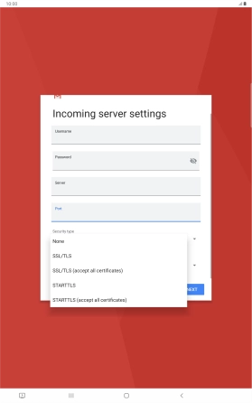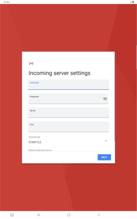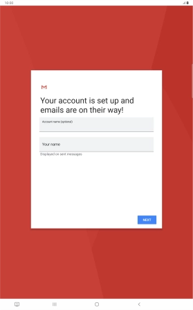If this screen is displayed, you email account has been recognised and set up automatically. Follow the instructions on the screen to key in more information and finish setting up your tablet.