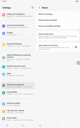 Press Delete all. Wait a moment while the factory default settings are restored. Follow the instructions on the screen to set up your tablet and prepare it for use.