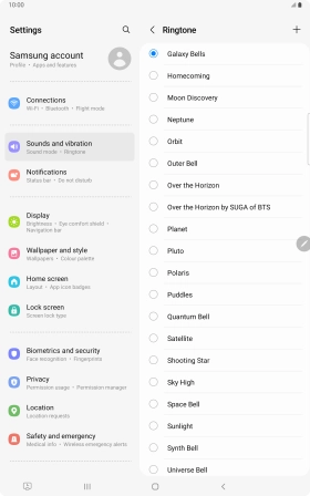 Select ring tone on your Samsung Galaxy Tab S8 5G Android 12.0