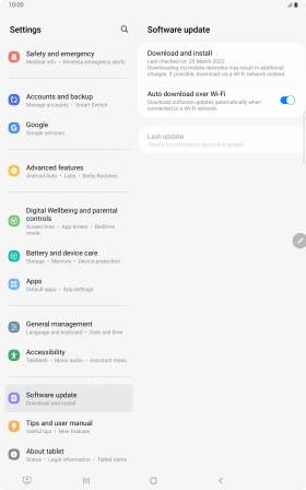 Press Download and install. If a new software version is available, it's displayed. Follow the instructions on the screen to update the tablet software.