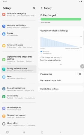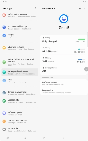 Press Battery and device care.