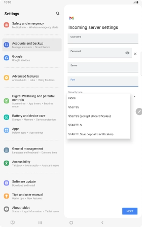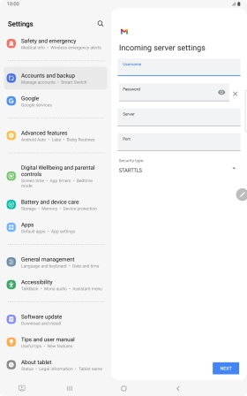 If this screen is displayed, you email account has been recognised and set up automatically. Follow the instructions on the screen to key in more information and finish setting up your tablet.
