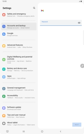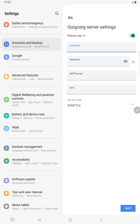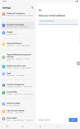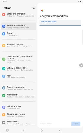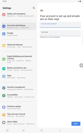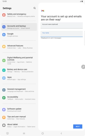 If this screen is displayed, you email account has been recognised and set up automatically. Follow the instructions on the screen to key in more information and finish setting up your tablet.