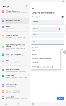 12. Enter outgoing server