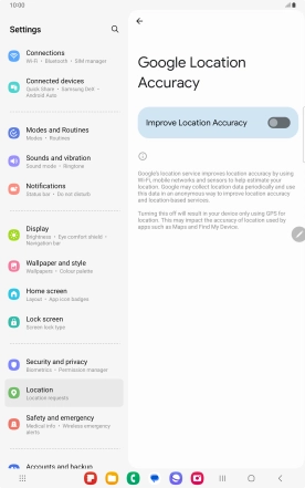 If you press the indicator next to "Improve Location Accuracy" to turn off the function, your tablet can find your exact position using the GPS satellites but it may take longer as there is no access to supplementary information from the mobile network or nearby Wi-Fi networks.