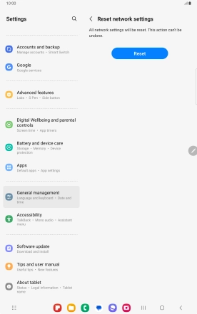 If you have problems using network configurations on your tablet, such as mobile data, Wi-Fi or Bluetooth, resetting the network settings may help.