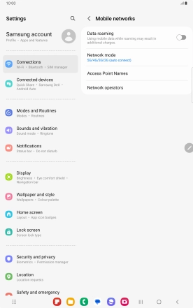 Press the indicator next to "Data roaming" to turn the function on or off.