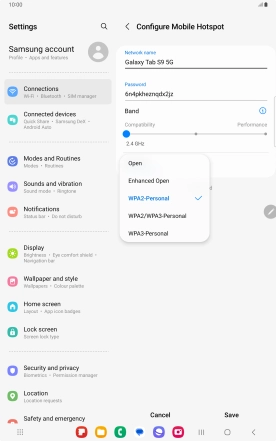 Press WPA3-Personal to password protect your Wi-Fi hotspot.