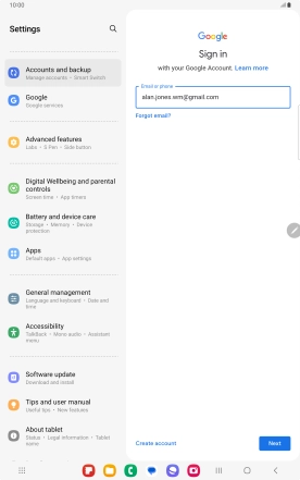 Activate Google account on your Samsung Galaxy Tab S9 5G Android 13