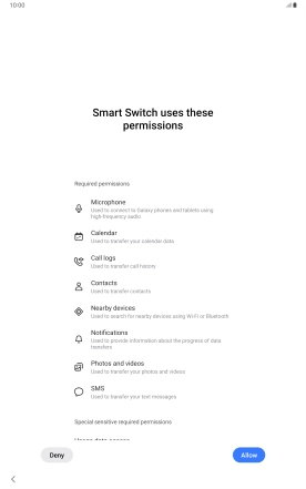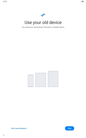 You can transfer the contents of another device to your tablet when it's activated for the first time and after a factory reset. When this screen is displayed, your tablet is ready to transfer contents from another device.