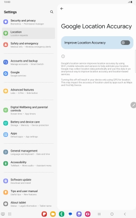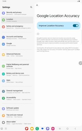 If you press the indicator next to "Improve Location Accuracy" to turn off the function, your tablet can find your exact position using the GPS satellites but it may take longer as there is no access to supplementary information from the mobile network or nearby Wi-Fi networks.