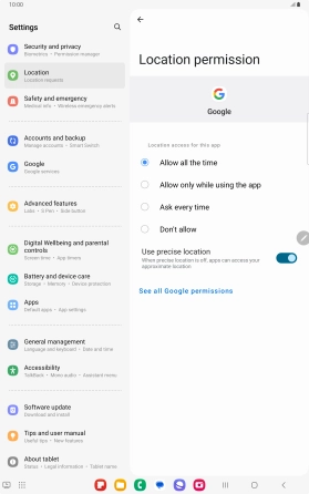 If you press the indicator next to "Improve Location Accuracy" to turn on the function, your tablet can find your exact position using the GPS satellites, the mobile network and nearby Wi-Fi networks. Satellite-based GPS requires a clear view of the sky.