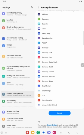 Press Delete all. Wait a moment while the factory default settings are restored. Follow the instructions on the screen to set up your tablet and prepare it for use.