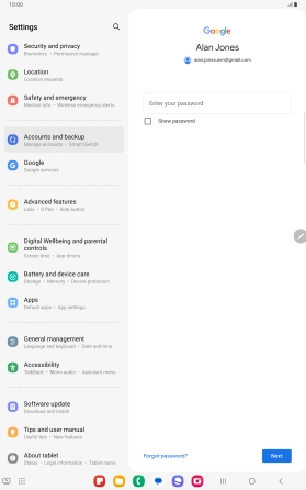 Activate Google account on your Samsung Galaxy Tab S9+ 5G Android 13