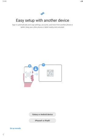 Press the required setting and follow the instructions on the screen to transfer content from another device or press Set up manually.