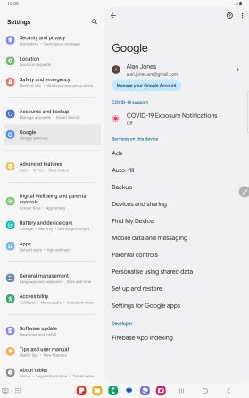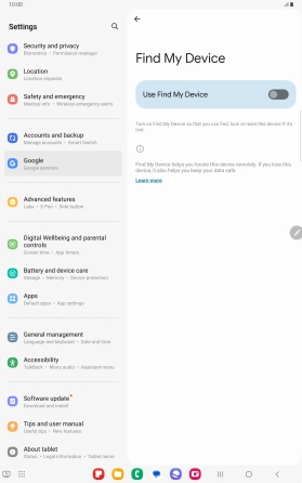 Select settings for Find My Device on your Samsung Galaxy Tab S9+ 5G Android 13
