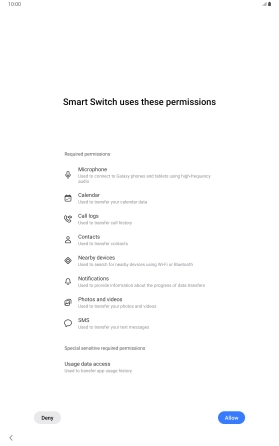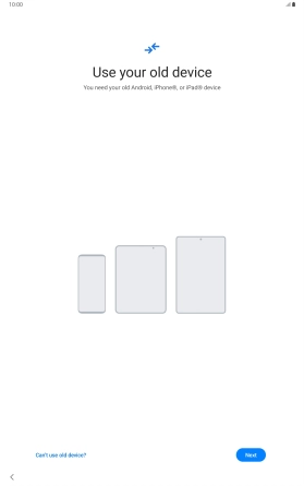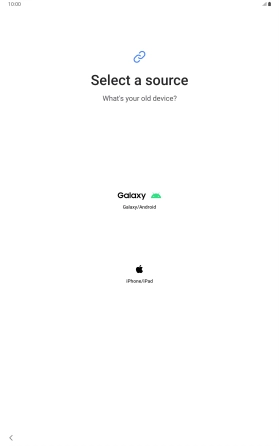 You can transfer the contents of another device to your tablet when it's activated for the first time and after a factory reset. When this screen is displayed, your tablet is ready to transfer contents from another device.