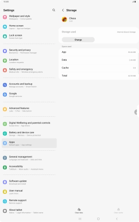 When you use apps on your tablet, various data is stored temporarily in the tablet memory. If your tablet runs out of memory, it may help deleting this data.