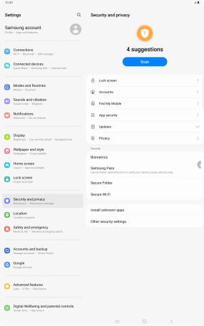 Press Security and privacy.