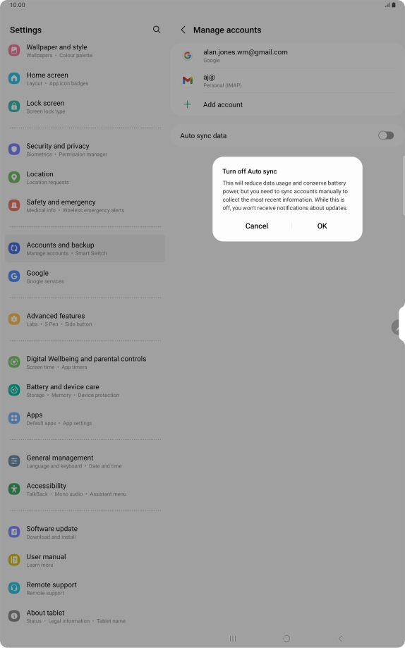 Press the indicator next to "Auto sync data" to turn the function on or off.