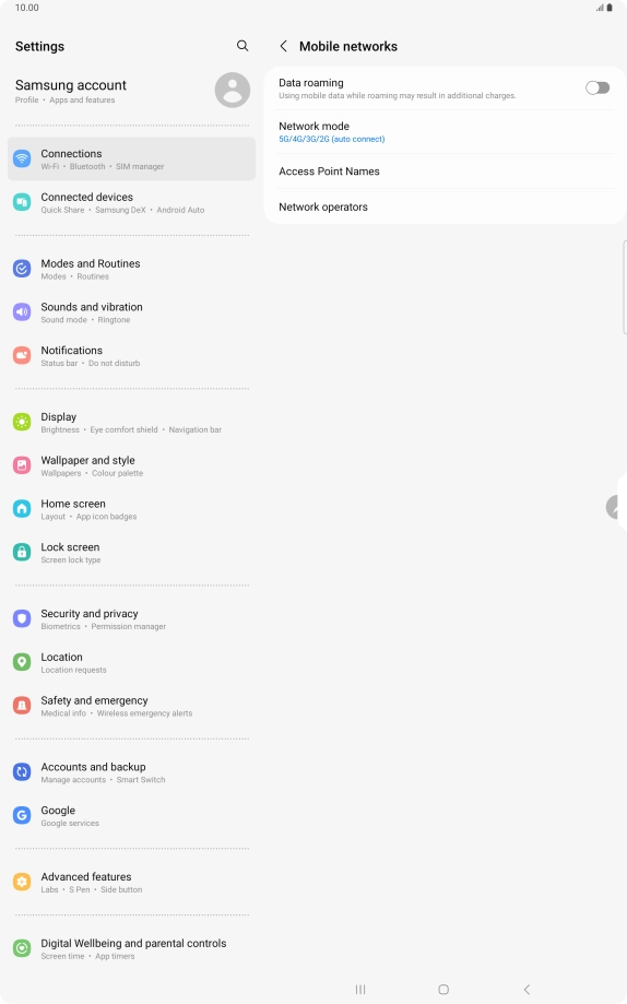 2 Turn data roaming on or off