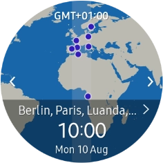 Slide your finger right or left on the Touch bezel to select the required time zone.