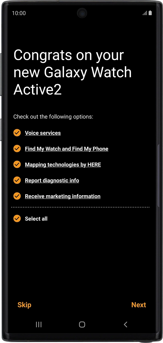 On your phone: To set up mobile data on your smartwatch later, press Skip.