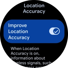 If you press the indicator next to "Improve Location Accuracy" to turn on the function, your smartwatch can find your exact position using the GPS satellites, the mobile network and nearby Wi-Fi networks. Satellite-based GPS requires a clear view of the sky.