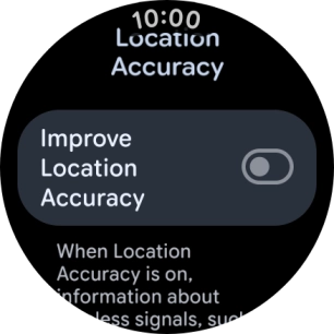 If you press the indicator next to "Improve Location Accuracy" to turn on the function, your smartwatch can find your exact position using the GPS satellites, the mobile network and nearby Wi-Fi networks. Satellite-based GPS requires a clear view of the sky.