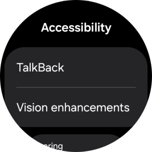 With TalkBack turned on, selected menu items will be highlighted and described via speech by your smartwatch.