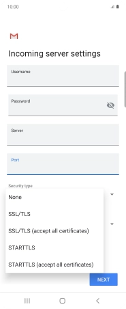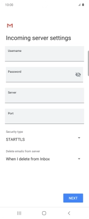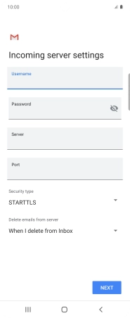 Press the field below "Server" and key in the name of your email provider's incoming server.