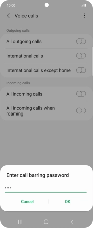 2. Turn call barring on or off