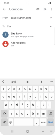 Press the text input field and write the text for your email message.
