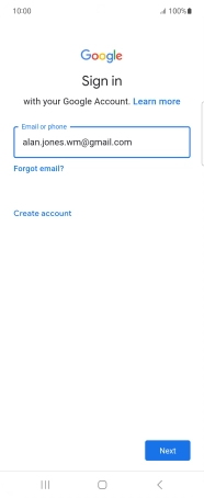 If you don't have a Google account, press Create account and follow the instructions on the screen to create an account.