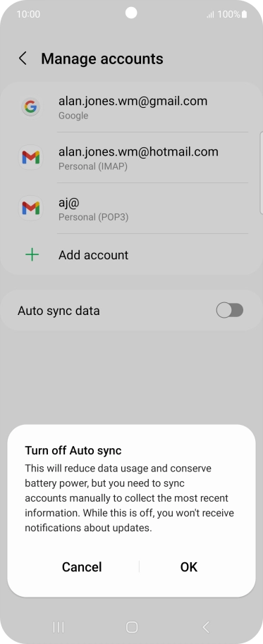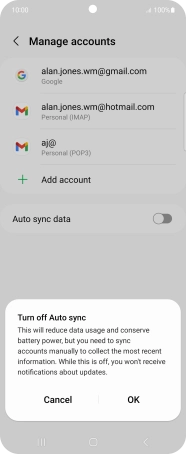 Press the indicator next to "Auto sync data" to turn the function on or off.