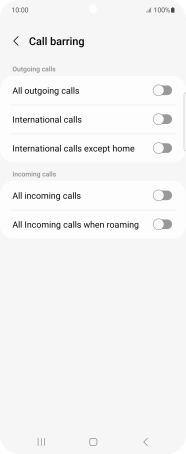 Press the indicator next to the required barring type to turn the function on or off.