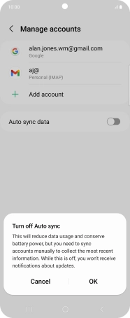 Press the indicator next to "Auto sync data" to turn the function on or off.