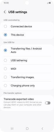 2. Choose setting for USB connection