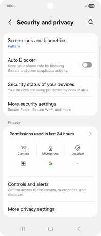 Press Security and privacy.