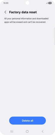 Press Delete all. Wait a moment while the factory default settings are restored. Follow the instructions on the screen to set up your phone and prepare it for use.