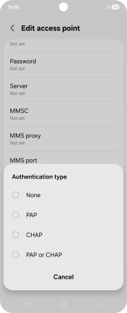 7. Enter APN type
