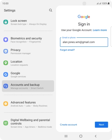 If you don't have a Google account, press Create account and follow the instructions on the screen to create an account.