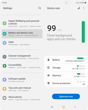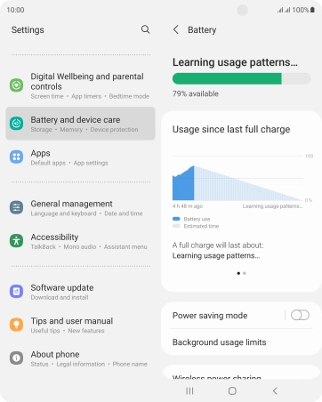 Press Battery and device care.