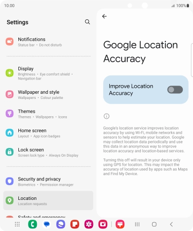 If you press the indicator next to "Improve Location Accuracy" to turn off the function, your phone can find your exact position using the GPS satellites but it may take longer as there is no access to supplementary information from the mobile network or nearby Wi-Fi networks.