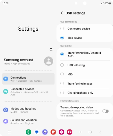 2. Choose setting for USB connection
