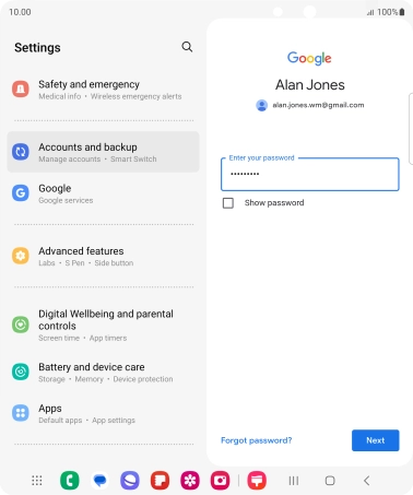 Press Enter your password and key in the password for your Google account.