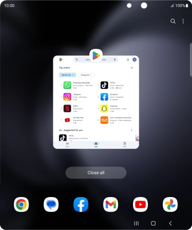 To end one running application, slide your finger upwards on the required application.