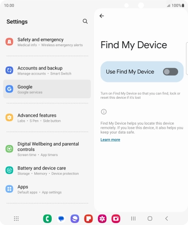 Select settings for Find My Device on your Samsung Galaxy Z Fold5 Android 13